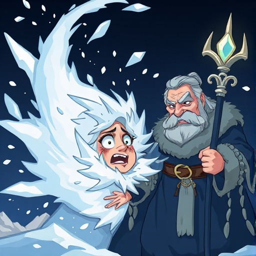 모로즈코는 다리야의 오만하고 무례한 대답에 크게 분노했습니다. 그의 눈빛은 이글거리는 얼음처럼 차가워졌고, 지팡이를 세 번 내리쳤어요. "네가 감히! 너처럼 욕심 많고 심술궂은 아이에게는 단 하나의 따뜻함도 아깝다!" 그 순간, 모로즈코는 가장 차갑고 매서운 눈보라와 냉기를 다리야에게 불어넣었습니다. 다리야는 아무것도 얻지 못한 채, 온몸이 꽁꽁 얼어버리고 말았습니다.
