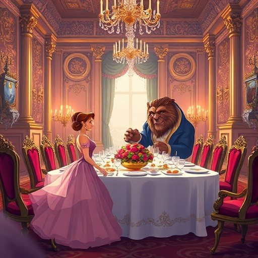 나스텡카가 야수의 성에 도착했을 때, 이상하게도 성은 어둡거나 무섭지 않았어요. 야수는 나스텡카를 궁궐에서 가장 화려한 방으로 안내하고, 가장 맛있는 음식과 아름다운 옷을 준비해 주었지요. 야수는 나스텡카를 **"가장 귀한 손님"**으로 대했습니다. 나스텥카는 처음에 야수의 무서운 겉모습에 놀랐지만, 야수가 말할 때의 목소리가 얼마나 부드럽고 상냥한지 알게 되었어요. 야수는 나스텥카에게 절대 강요하지 않고, 그녀가 원하는 것은 무엇이든 들어주었답니다.