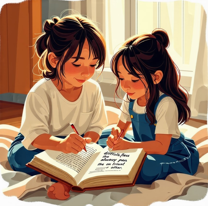 어린 장화와 홍련은 떨리는 마음으로 어머니의 일기장을 함께 읽어 내려갔다. 일기장 속에는 두 딸에 대한 어머니의 깊은 사랑과 애틋한 마음이 고스란히 담겨 있었다. 갓 태어난 장화의 작은 손가락을 잡고 감격스러워했던 순간, 홍련의 맑은 웃음소리에 행복해했던 기억, 두 딸의 건강과 행복을 간절히 바라는 어머니의 따뜻한 마음이 고스란히 느껴졌다. 일기장을 읽는 동안, 장화와 홍련의 눈에서는 하염없이 뜨거운 눈물이 흘러내렸다. 잊고 지냈던 어머니의 따스한 사랑이 낡은 일기장을 통해 다시금 생생하게 되살아나는 듯했다.