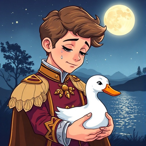 왕자가 오두막에 가까워질수록 따뜻한 빛이 새어나왔습니다. 문을 열자 숲 할머니와 흰 오리가 함께 있었습니다. 왕자는 순간 멈춰 섰습니다. 오리가 자신을 바라보며 애타는 눈빛을 보냈기 때문입니다. “설마… 공주님?” 왕자의 조심스러운 목소리에 흰 오리는 눈물을 똑 떨어뜨렸습니다. 할머니는 진실을 조용히 말해주었습니다. “이 아이가 바로 네가 찾는 공주란다. 마녀의 마법에 걸렸지.” 왕자는 오리를 부드럽게 안으며 속삭였습니다. “걱정 마. 내가 널 되돌릴 방법을 찾을게.” 그 말에 호수 위 달빛이 더욱 밝게 비쳤습니다. 마치 두 사람(두 생명)의 진심을 축복하는 듯 고요하게 반짝였습니다.