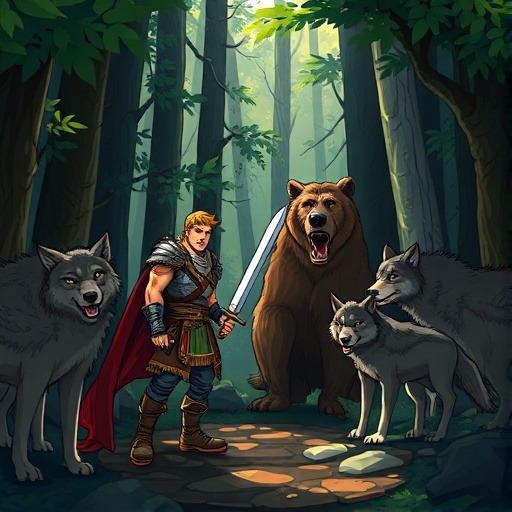– 용사와 곰이 함께 맞서는 늑대 떼와 숲의 함정