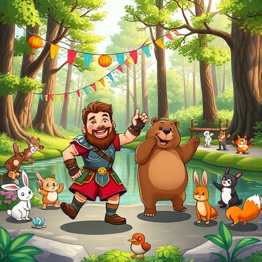 – 용사와 곰이 숲의 동물들과 함께 승리를 기념