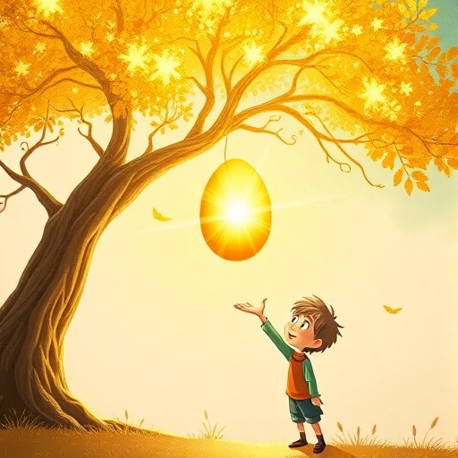 호수를 건너자 작은 섬이 나타났다. 섬 위에는 금빛 나무 한 그루가 있었고, 나무 끝에서 황금 달걀 하나가 빛나고 있었다. 이반이 가까이 가자 마법 바늘이 강하게 빛났다. “바로 저거야!”