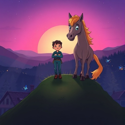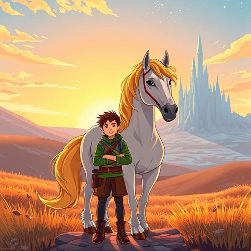 “괜찮아, 내가 도와줄게!” 이반은 조심스럽게 덫을 풀어 주었다. 말은 자유를 되찾자 기쁘게 뛰어오르며 이반의 손등을 가볍게 비볐다. 놀랍게도 말이 말을 걸었다. “고마워, 이반. 나는 하늘에서 내려온 마법의 말이야. 네가 순수한 마음으로 나를 구해줬으니 앞으로 너의 모험을 돕고 싶어.”