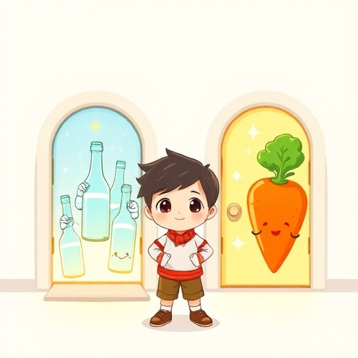 토리는 깜짝 놀라며 “너희들이… 말도 해?” 하고 물었습니다. 그러자 분홍빛 영양제 병이 앞으로 걸어 나와 말했습니다.