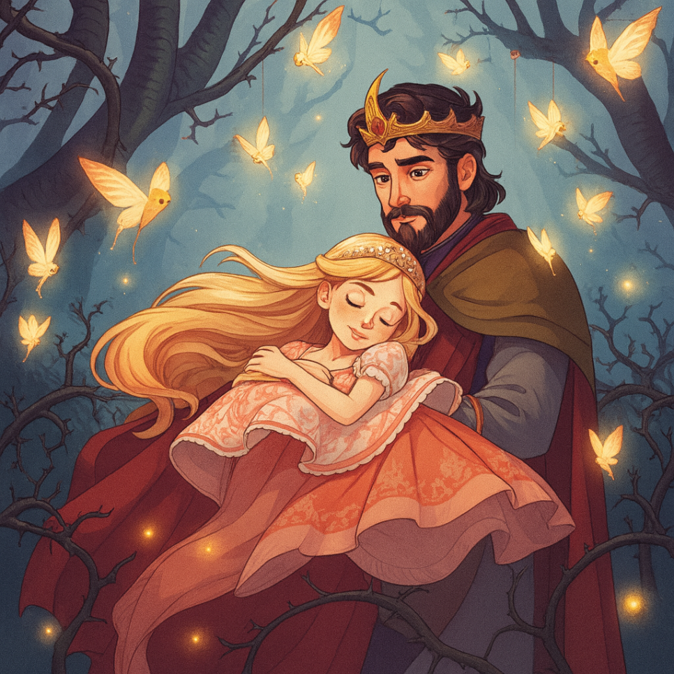 한편, 멀리서 소문을 들은 용감한 왕자가 공주를 구하기 위해 등장합니다. 그는 가시 숲과 마법의 장애물을 헤치며 성으로 향합니다. 숲 속 동물들의 도움과 요정의 지혜로, 왕자는 차근차근 성 안으로 들어가고, 마침내 공주에게 키스를 통해 저주를 깨뜨립니다. 공주와 왕자는 서로를 바라보며 진정한 사랑과 용기를 확인하고, 성과 마을은 다시 평화와 기쁨으로 가득 차게 됩니다.
