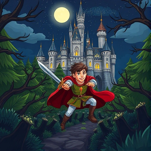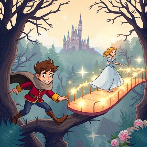 멀리 떨어진 왕국에서 소문을 듣고 온 왕자는 용감하게 공주를 구하기로 결심했습니다. 왕자는 마법 지도와 요정의 조언을 받아 가시 숲으로 향했습니다. 숲 속에서 수많은 장애물과 마법 생물들을 만나지만, 지혜와 용기로 하나씩 극복하며 성에 다가갔습니다.