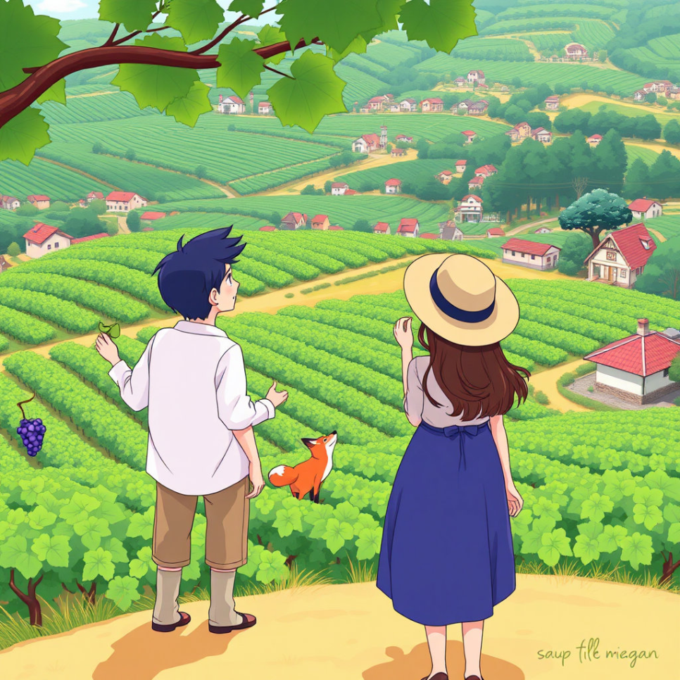 그날 저녁, 마을 할아버지가 큰 감나무 아래 아이들을 불렀다. “옛날에도 장난꾸러기들이 있었단다. 그중 한 아이는 여우를 따라가다 진짜 포도 숲을 발견했다지.” 아이들은 눈을 반짝이며 이야기에 빠져들었다. 할아버지는 포도나무가 지닌 생명의 힘과 마을의 전통을 차분히 들려주셨다. “포도는 기다림의 열매란다. 서두르면 신맛만 남지.” 아이들은 고개를 끄덕이며 진심으로 잘못을 깨달았다.