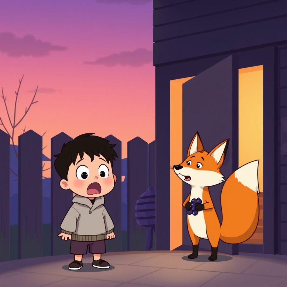 어느 날 해질 무렵, 민우는 포도밭 가장자리에서 작고 노란 무언가를 발견했다. 조용히 다가가니, 갈색 꼬리를 흔드는 여우 한 마리가 그를 바라보았다. 민우는 놀랐지만 무서워하지 않았다. 여우는 포도송이를 입에 문 채 고개를 끄덕이더니 숲속으로 사라졌다. 수아는 그것이 바로 포도 여우라는 전설 속 주인공이라고 말했다. "밤마다 몰래 포도를 따 가는 지혜로운 여우래." 아이들은 여우가 남긴 발자국을 따라 숲을 탐험했다.