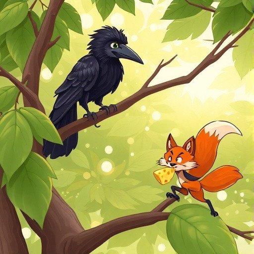 숲 속에는 지혜롭지만 가끔은 호기심이 많은 까마귀 까미가 살고 있습니다. 어느 날 까미는 아주 특별한 치즈를 발견하게 되고, 그것을 차지하려는 교활한 여우 루시와 맞닥뜨립니다. 루시는 칭찬을 이용해 까미를 속이지만, 까미는 실수를 통해 중요한 교훈을 배우게 됩니다. 숲 속 친구들은 까미에게 조언을 해주고, 까미는 점점 지혜로워지며, 결국 여우와의 관계에서도 이해와 용서, 우정을 배우게 됩니다.
