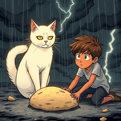 루카는 따뜻한 우유와 조그마한 빵 조각을 내밀었어요. 고양이는 작고 말린 물건처럼 연약해 보였지만, 먹을 때만큼은 눈이 반짝였어요. 루카는 그 모습이 귀여워 “미라”라는 이름을 붙여 주었답니다.