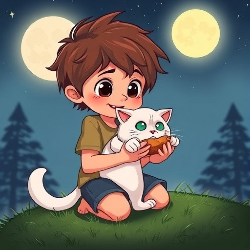 어느 날 밤, 루카가 빵을 굽고 있을 때였어요. 빵집 문 앞에서 ‘야옹’ 하는 작은 소리가 들려왔지요. 문을 열어 보니, 달빛처럼 흰 털을 가진 작은 고양이가 떨고 있었어요.