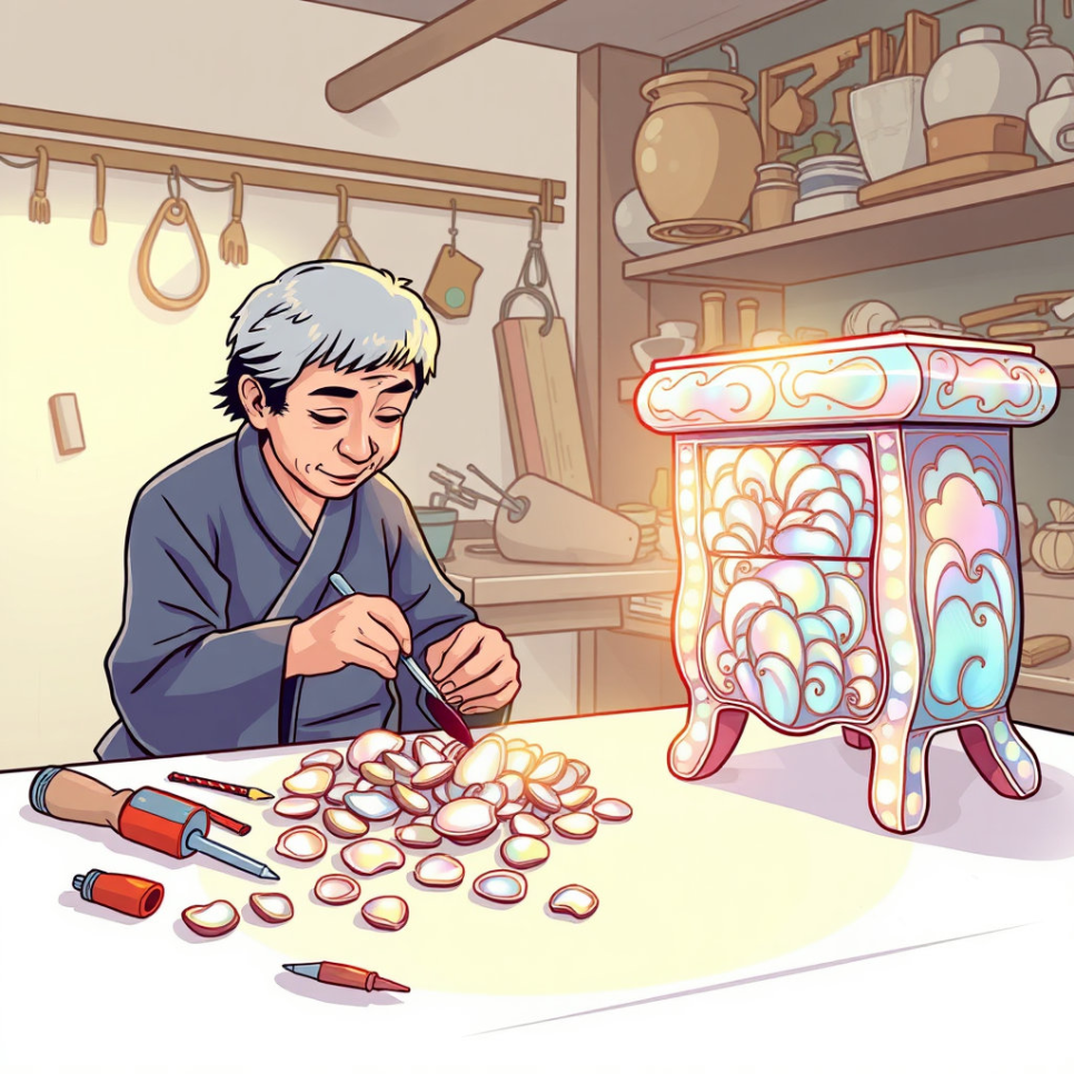 오늘날 우리는 스마트폰이나 컴퓨터 같은 멋진 기계와 다양한 물건들 속에서 살고 있어요. 하지만 옛날 우리 조상님들이 소중히 여기던 자개장과 진주의 아름다움도 여전히 우리 곁에 살아 숨 쉬고 있답니다.