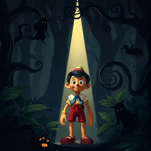 피노의 첫 모험은 ‘진실’에 대한 시험입니다. 거짓말을 하면 코가 길어지는 장면은 단순한 우스꽝스러움을 넘어, 말과 행동의 결과를 곧바로 보여주는 상징적 장치입니다. 이어지는 ‘여우와 고양이’는 현대의 온라인 유혹, 불량 친구 등을 상징하여 피노에게 더 큰 혼란을 주지요. 아이들이 실제로 겪는 유혹과 비슷해 공감대를 형성하도록 구성되었습니다.