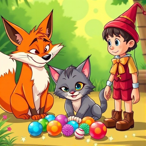 학교로 가던 길, 여우와 고양이가 피노에게 다가왔어요.