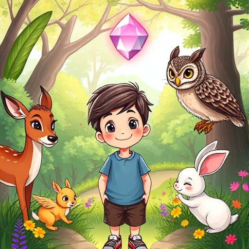 다음 날, 아이는 기운이 없었다. 마음이 풀리지 않아 산책길로 향했다. 그러자 숲속의 작은 동물들이 아이 주위를 맴돌기 시작했다. 새들은 맑은 소리로 노래하고, 바람은 나뭇잎을 흔들어 부드러운 소리를 냈다. “용기를 잃지 마.” 자연이 속삭이는 듯했다. 아이는 마음을 조금 열었다. 그 순간, 디아스포어에 은은한 연분홍빛이 돌기 시작했다. “아이의 마음이 조금씩 가벼워지고 있어.” 보석이 기쁘게 말했다. 아이는 미소를 지으며 숲의 온기를 느꼈다. 희망이 조용히 움트기 시작한 것이다.
