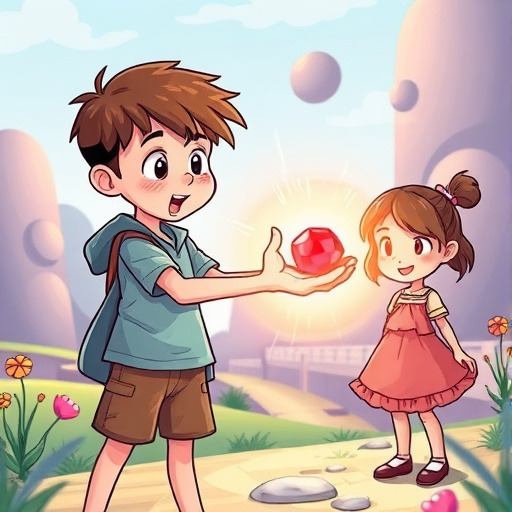 아이에게는 한 가지 두려움이 있었다. 친구에게 먼저 사과하는 것이었다. 하지만 마음 한켠에서는 계속 용기가 자라나고 있었다. “난 널 믿어.” 디아스포어는 강렬한 체리빛으로 빛나며 아이를 응원했다. 결국 아이는 결심했다. 다음 날 학교에서 친구에게 다가가 솔직하게 말했다. “어제는 미안했어.” 친구는 놀란 표정이었지만 곧 웃었다. “나도 미안해.” 그 순간 디아스포어는 마치 폭죽처럼 빛을 터뜨렸다. 아이는 보석을 꼭 쥐며 속삭였다. “용기, 정말 빛나는 거구나.”