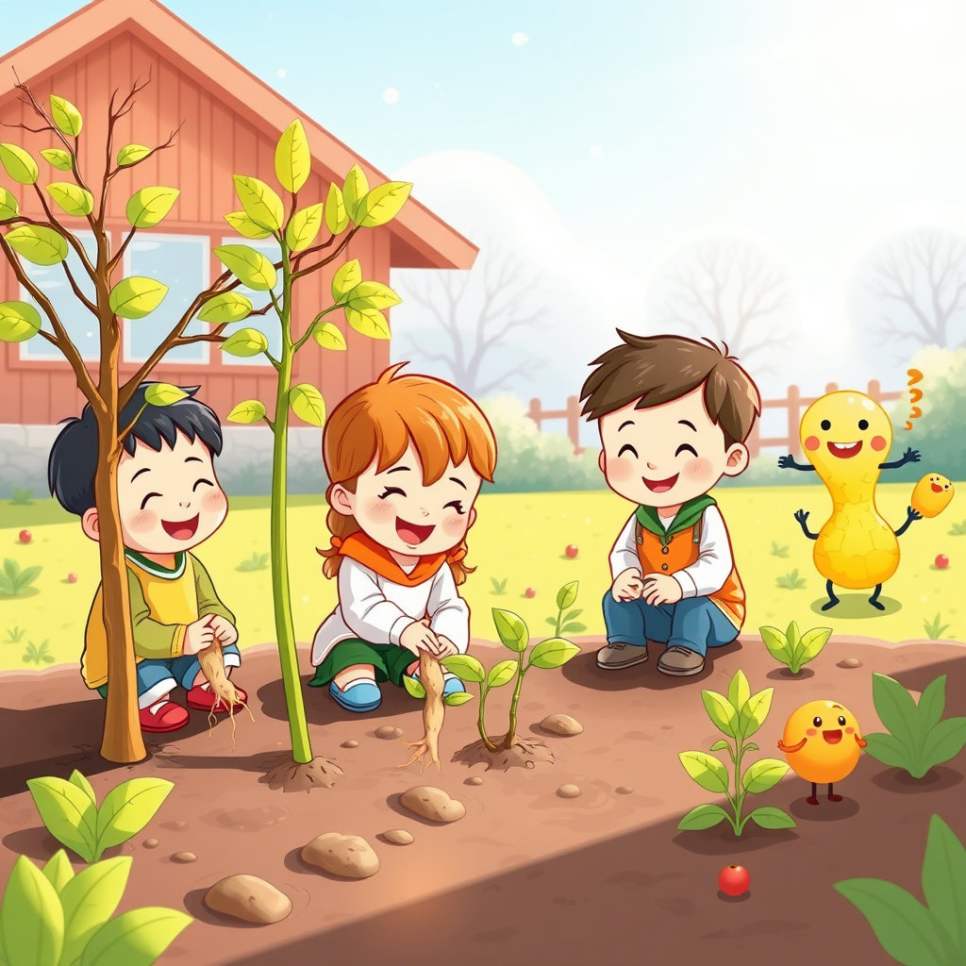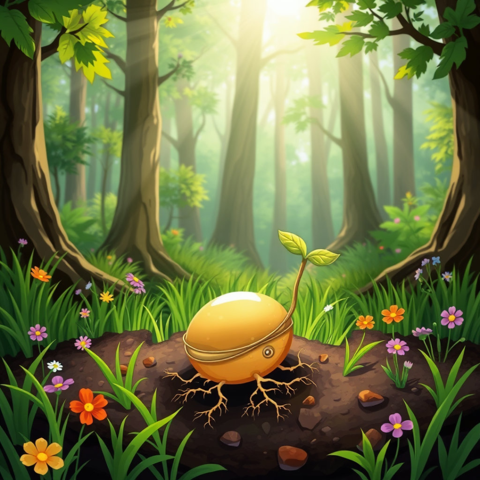 깊은 산골 숲속, 어둑한 나무 그늘 아래에 아주 작은 씨앗 하나가 떨어졌어요. 이 씨앗은 바로 ‘인삼’이었어요. “여긴 너무 어두워요!” 씨앗은 속으로 생각했지만, 땅속은 조용하고 따뜻했어요. 봄이 오고 여름이 가고… 인삼은 천천히 뿌리를 내리고 줄기를 올렸어요. 그리고 몇 년 동안 겨울을 지나며 조금씩 자라났답니다. 인삼은 느리지만 튼튼하게 자라는 식물이었어요.