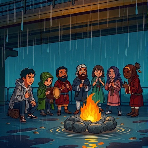 비가 쏟아지는 밤, 왕초와 단원들은 다리 밑에서 잠을 청했다. 달쇠가 물었다. “왕초님, 왜 이렇게 떠돌아다녀요?” 왕초는 말했다. “웃음이 필요한 곳이 길 위에 있기 때문이란다.” 그 말은 단원들의 마음에 오래 남았다.