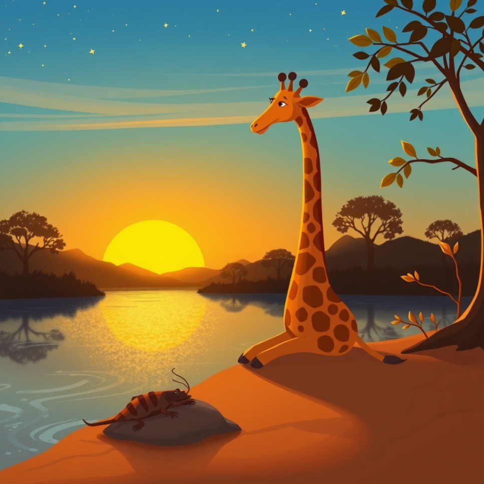 기린과 가재는 말했어요. “이 여름, 절대 잊지 못할 거야!” 동물 친구들은 서로 손을 잡고 인사했어요. “다음 여름에도 꼭 다시 만나자!” 숲속엔 웃음과 추억이 가득했고, 해는 천천히 저물어갔어요.