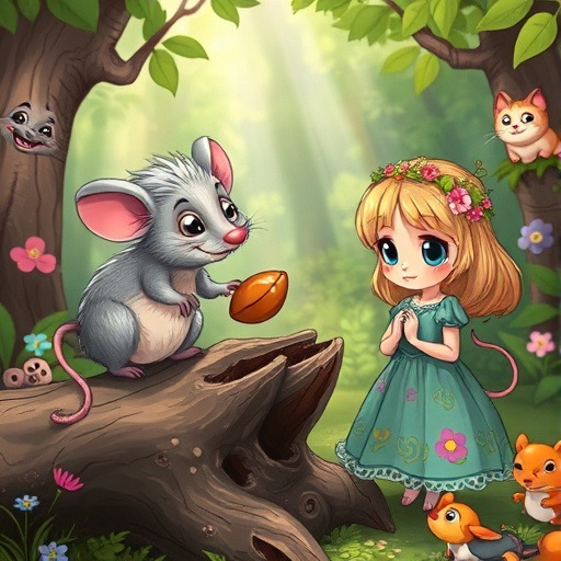 숲 속은 조용했습니다. 나무들은 리세의 마음을 읽은 듯 잎을 흔들며 그녀를 위로했습니다. 그때 조그마한 나무뿌리 위에 앉아 있는 늙은 생쥐 한 마리가 리세를 바라보고 있었습니다.