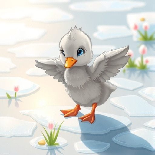 그러던 어느 날, 얼음 사이로 비친 자신의 모습이 예전보다 조금씩 달라지고 있다는 걸 깨달았어요. 목은 길어지고, 날개는 넓어지고 있었지요.