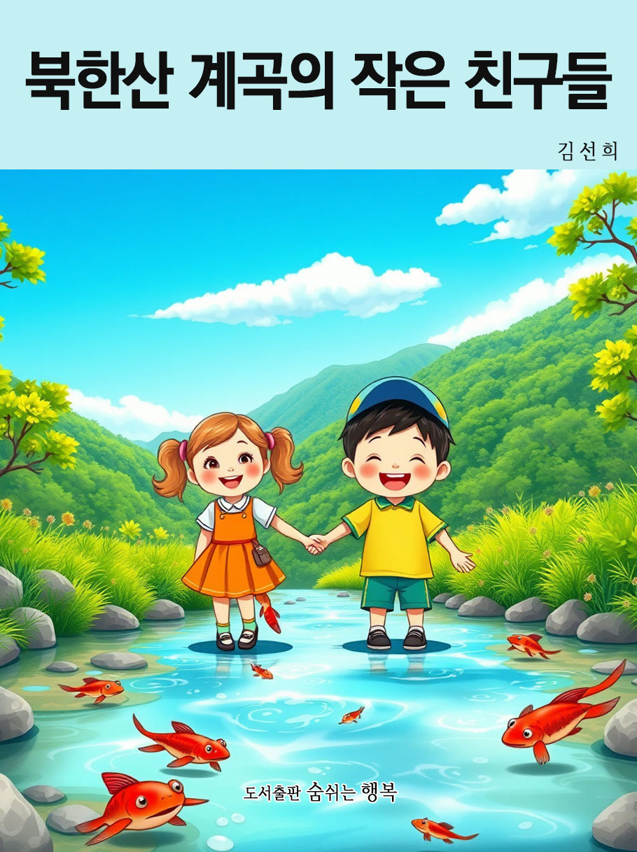 『북한산 계곡의 작은 친구들』은 북한산 자락의 맑은 계곡과 자연 속에서 자란 꼬마 소녀와 꼬마 소년의 아름다운 추억을 담은 이야기입니다. 미꾸라지, 올챙이, 가재 같은 작은 생명들과 함께 뛰어놀며 자연을 배우고 사랑하는 법을 깨닫는 따뜻한 동화입니다. 계곡물의 맑고 시원한 소리, 바위틈에서 살며 용감하게 움직이는 가재, 물속을 헤엄치는 미꾸라지와 올챙이들의 신나는 모습이 생생하게 그려집니다. 아이들은 책을 통해 자연과 친구가 되는 소중한 경험을 할 수 있고, 계절마다 변하는 북한산의 아름다운 풍경도 느낄 수 있습니다. 어린이들이 자연을 아끼고 보호하는 마음을 키우는 데 도움을 주는, 즐겁고 교육적인 이야기책입니다.