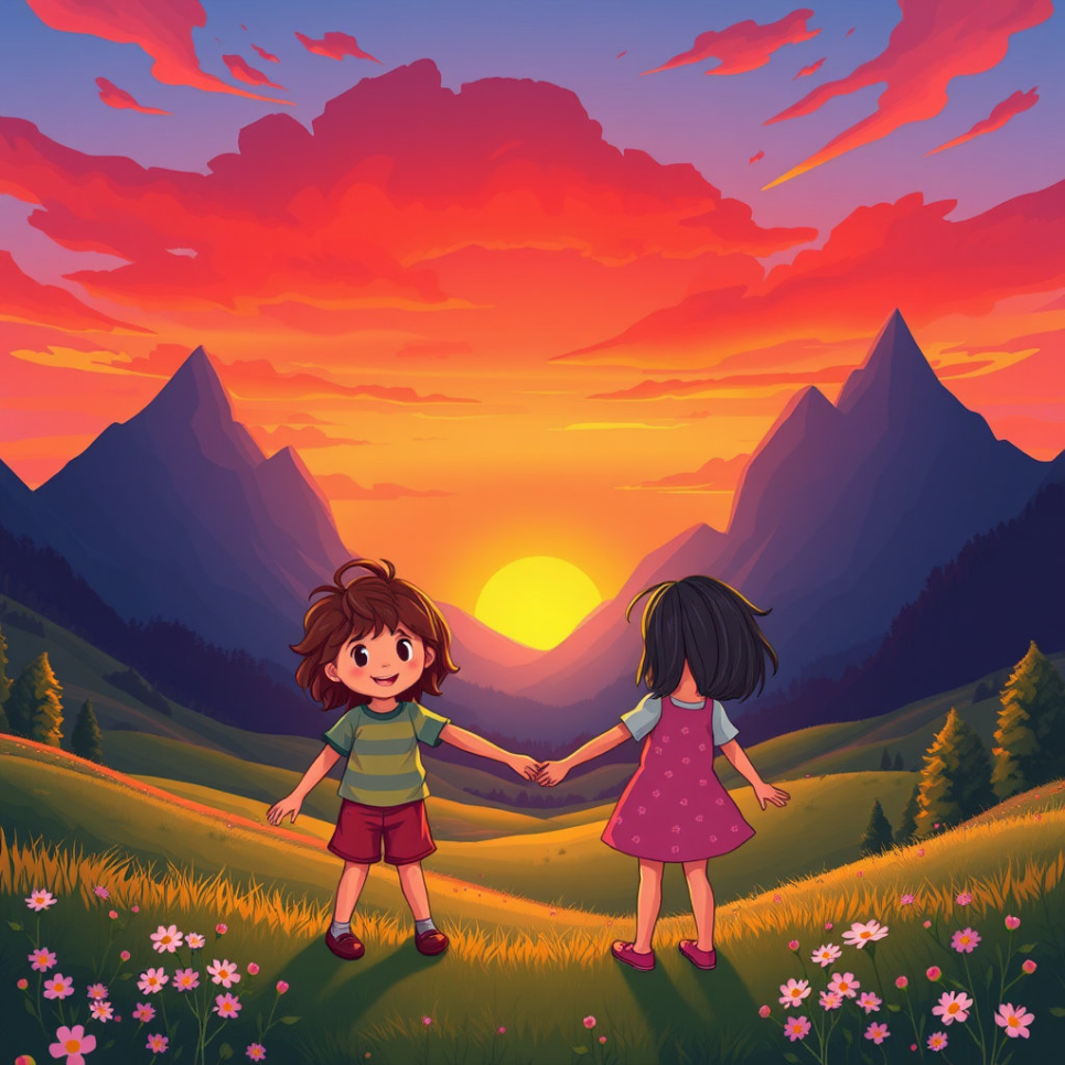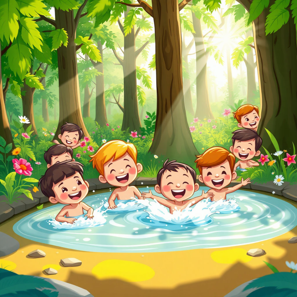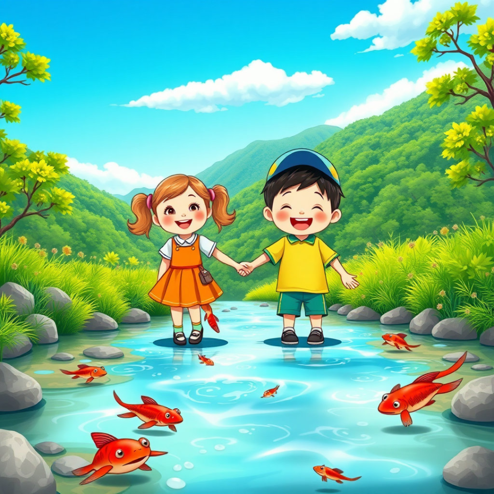 나는 꼬마 소녀, 내 친구는 꼬마 소년이에요. 우리는 함께 계곡 옆 작은 숲속에 비밀 장소를 만들었죠. 나무 그늘 아래 작은 집을 짓고, 돌로 만든 탁자에 모여 간식을 나누었어요. 그곳은 우리만의 특별한 공간이었답니다. 계곡물 소리를 들으며 우정도 깊어지고, 자연 속에서의 모험도 시작되었어요.