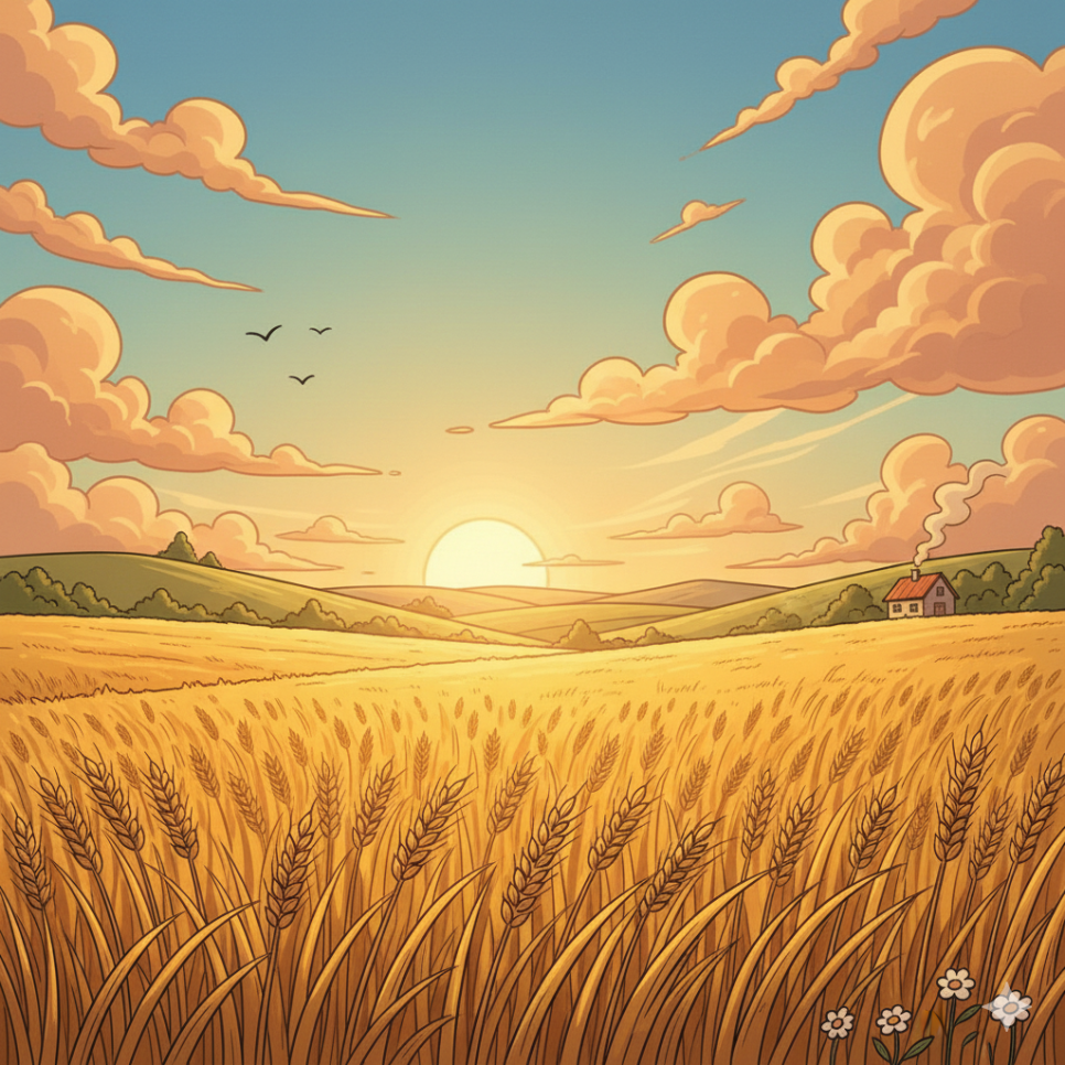 여름이 지나고 가을이 오자 밭은 황금빛으로 물들었어요. 바람이 불 때마다 밀 이삭이 파도처럼 흔들렸지요. 마르코는 매일 밭을 돌보며 감사의 노래를 불렀고, 사제는 멀리서 계산하며 수확량을 가늠했어요. 수확의 날, 밀은 예상보다 훨씬 많았어요. 마르코의 손길과 땅의 정성이 만든 기적이었지요. 그러나 사제의 눈에는 그 황금빛이 기쁨보다는 계산의 대상처럼 보였어요.