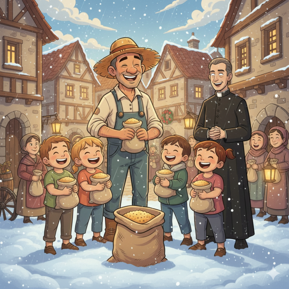 내기 날, 사제님의 씨앗은 결국 싹을 틔우지 못했습니다. 그는 이유를 설명하려 애썼지만 말은 공허했습니다. 반면 농부의 밭에서는 알찬 곡식이 고개를 숙이고 있었습니다. 안젤로는 고개를 숙여 감사 인사를 했습니다. “땅이 해준 일입니다.” 그 순간 사람들은 말보다 마음이 중요하다는 것을 깨달았습니다. 씨앗은 욕심이 아닌 믿음에서 자란다는 사실도 함께요.