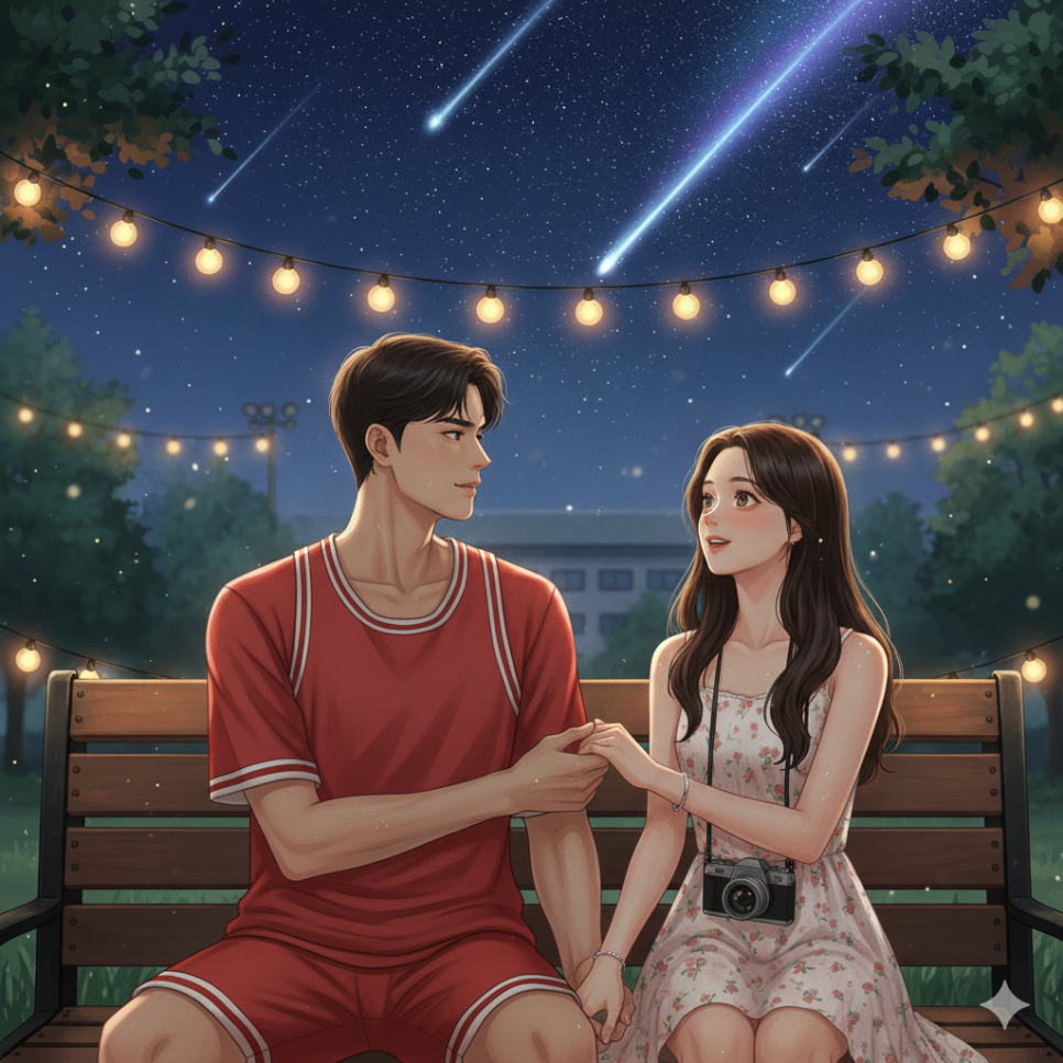 그럼에도 축제의 마지막 밤, 별똥별 소원 빌기 이벤트가 열리는 체육관 뒤 벤치에서 진혁은 용기를 냅니다. "네 카메라에 담긴 내 모습이 가장 진짜 나인 것 같아. 내 마음도 네 거야, 한여름." 두 사람은 손을 꼭 잡은 채 별을 바라보며 서로의 마음을 확인합니다.