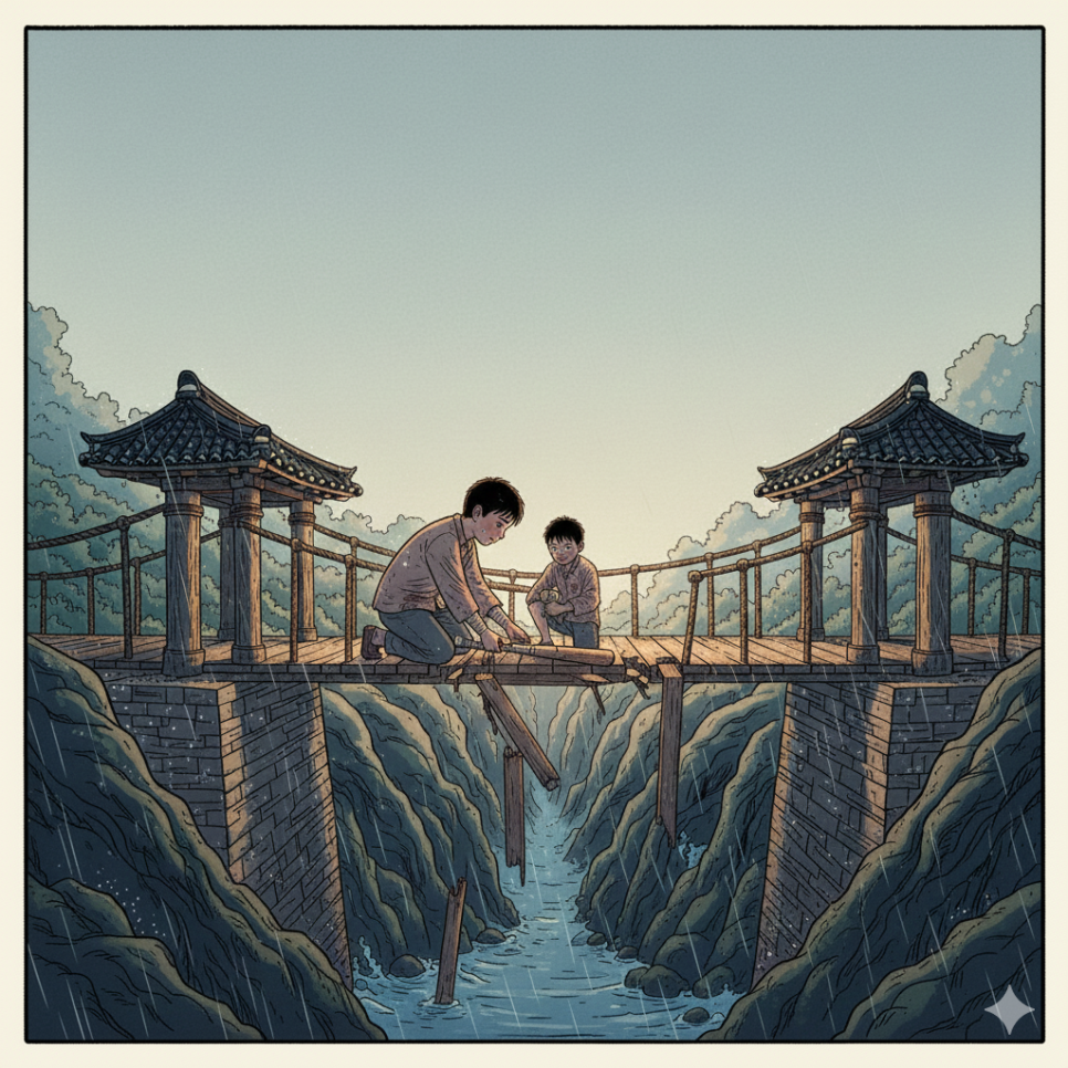숲길을 걷던 아이는 큰 나무 아래에서 쉬고 있는 노인을 만났다. 노인은 긴 수염을 쓰다듬으며 아이를 바라보았다. “얘야, 물 한 모금만 나눠 줄 수 있겠니?” 아이는 망설임 없이 물병을 건넸다. 노인은 천천히 마신 뒤 고개를 끄덕였다. “요즘 아이들은 대가를 먼저 묻지. 넌 그렇지 않구나.” 아이는 그 말이 무슨 뜻인지 몰랐지만 웃으며 인사했다. 노인은 떠나기 전, 허름한 방망이 하나를 건넸다. “이건 특별한 방망이다. 필요할 때 ‘딱!’ 하고 바닥을 치거라. 하지만 욕심을 부리면 방망이는 등을 돌릴 것이다.” 아이는 장난감이라 생각하며 감사 인사를 했다.