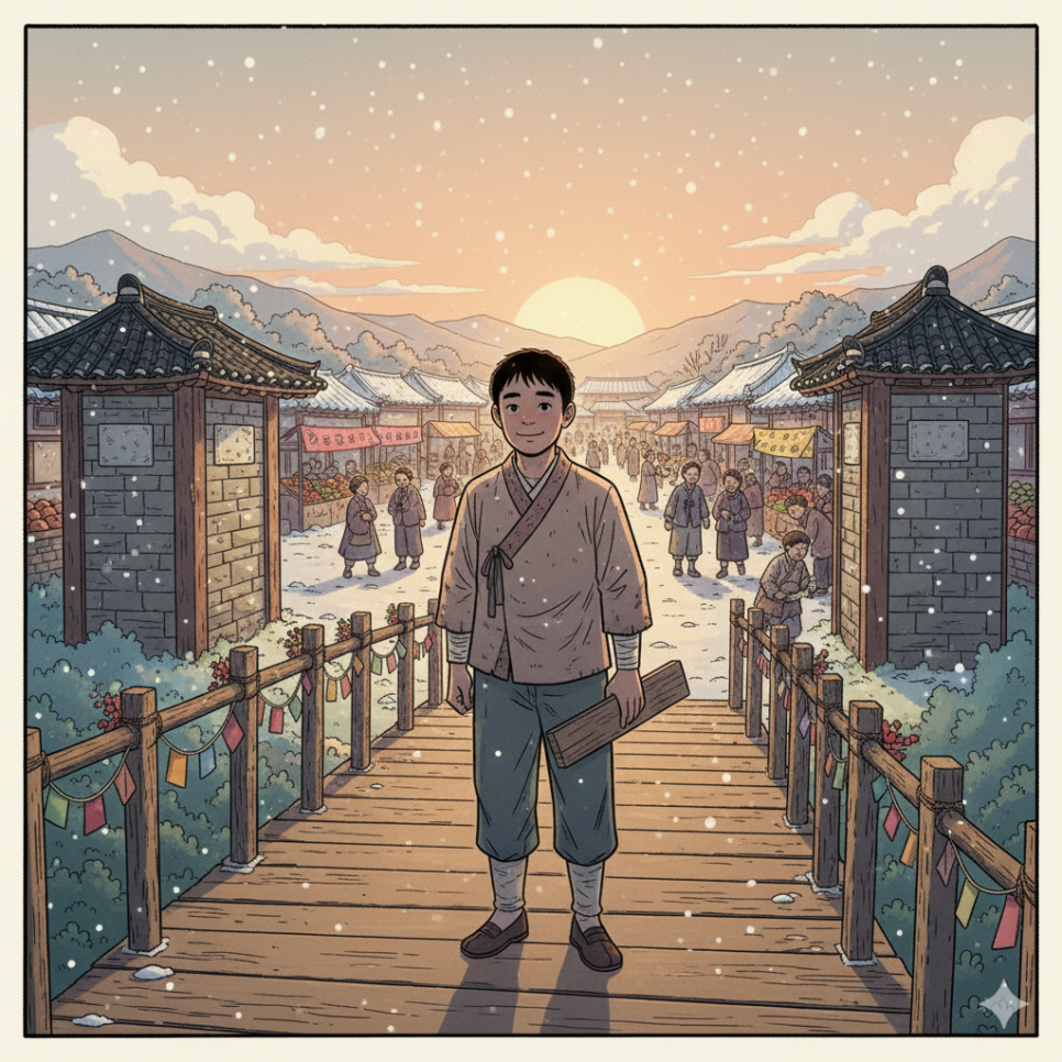 마을 끝 작은 돌집에 아이는 홀어머니와 함께 살고 있었다. 가진 것은 거의 없었지만 아이의 얼굴에는 늘 웃음이 있었다. 어머니는 빵을 굽고 아이는 시장에서 나무를 팔며 하루하루를 보냈다. 배가 고픈 날에도 아이는 “오늘은 배가 비워서 하늘이 더 잘 보이네요”라며 어머니를 웃게 했다. 마을 사람들은 아이의 밝음을 좋아했지만, 가난이 바뀌지는 않았다. 어느 날 어머니는 숲에 가 나무를 더 해오자고 했고, 아이는 혼자 숲으로 향했다. 그 숲은 깊고 오래된 나무들이 이야기를 숨 쉬듯 품고 있는 곳이었다. 아이는 그곳에서 인생을 바꿀 만남이 기다리고 있다는 것을 알지 못했다.