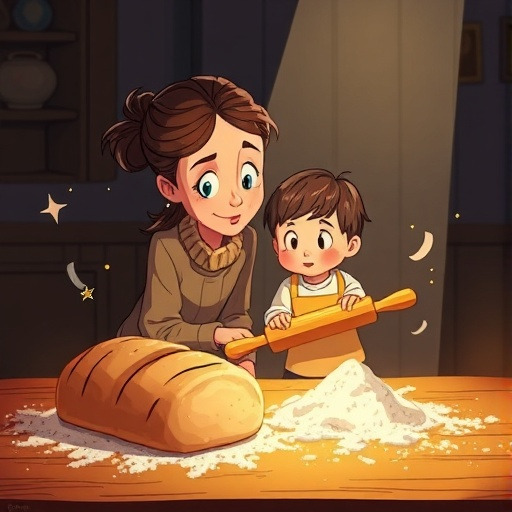 집으로 돌아온 아이는 방망이를 벽에 세워두었다. 그날 밤, 어머니는 밀가루가 떨어졌다고 걱정했다. 아이는 문득 노인의 말을 떠올렸다. 조심스럽게 방망이를 들고 마룻바닥을 ‘딱!’ 하고 쳤다. 놀랍게도 방 안에 밀가루 자루와 따뜻한 빵이 나타났다. 어머니는 눈을 크게 뜨고 아이를 끌어안았다. 아이는 기뻤지만 마음이 이상하게 조용해졌다. 방망이가 준 것은 풍요였지만, 아이는 그 힘이 장난이 아니라는 것을 느꼈다. “필요할 때만 써야 해.” 아이는 스스로에게 약속했다. 방망이는 그날 밤, 달빛처럼 조용히 빛났다.