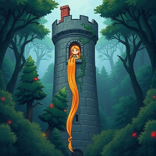 라푼젤의 머리카락은 햇살처럼 길고 빛났습니다. 마녀는 탑 아래에서 “라푼젤, 머리카락을 내려다오”라고 불렀고, 라푼젤은 아무 의심 없이 머리카락을 내려주었습니다. 그 머리카락은 세상과 이어진 유일한 길이었습니다. 라푼젤은 그 길이 언젠가 자신을 밖으로 데려다줄지도 모른다고 생각했습니다.