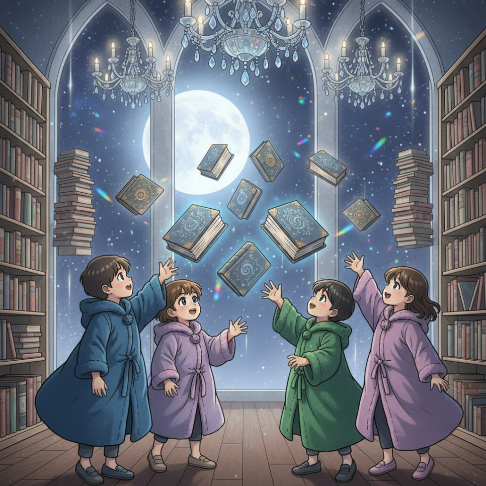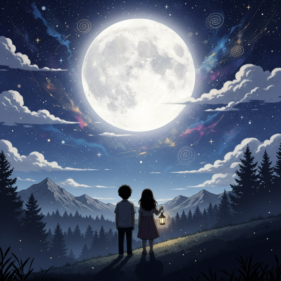 그 순간, 달빛이 두 아이의 얼굴을 비추며 대답하듯 반짝였다.