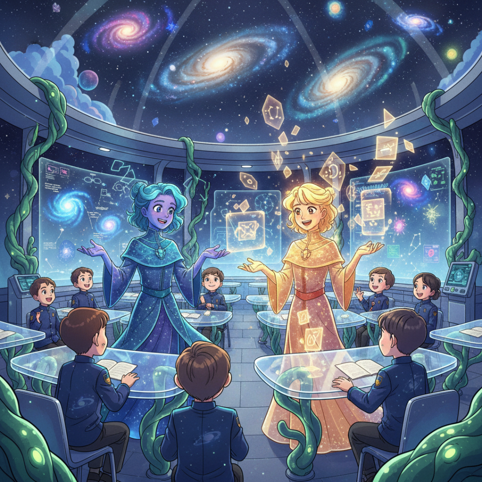 우주학교에서는 지구에서 배우는 것과 전혀 다른 수업이 있었다.