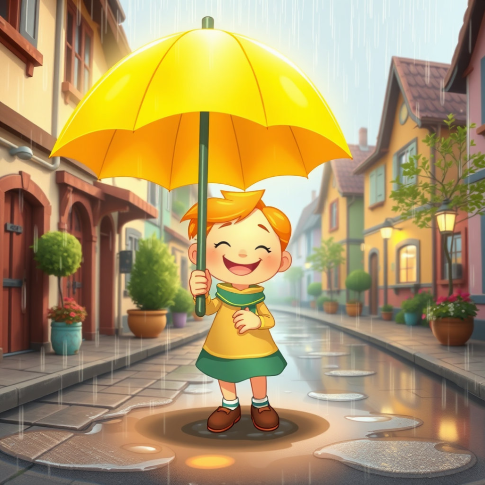 어느 날, 셀브루는 우산 속에서 반짝이는 작은 별들을 발견했어요. 이 노란 우산에는 사람들의 마음을 따뜻하게 하는 마법이 숨어 있었던 거예요! 셀브루는 이 비밀을 간직하며 더 많은 사람들에게 희망을 전하기로 마음먹었답니다.