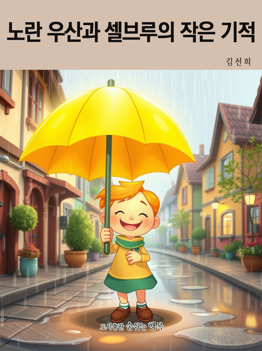 『노란 우산과 셀브루의 작은 기적』은 노란 우산과 함께하는 셀브루와 친구들의 신비롭고 감동적인 모험 이야기입니다. 비가 자주 오는 작은 마을에서 발견한 노란 우산은 따뜻한 빛과 마법 같은 힘을 품고 있었어요. 셀브루는 우산을 통해 자신과 친구들, 마을 사람들의 마음을 잇는 힘을 발견하고, 우산과 함께 더 넓은 세상으로 용감하게 나아갑니다. 비바람이 몰아칠 때도 서로를 격려하며 용기를 잃지 않고, 어려움 속에서도 포기하지 않는 셀브루와 친구들의 모습은 어린이들에게 소중한 우정과 협력의 가치를 가르쳐 줍니다.
