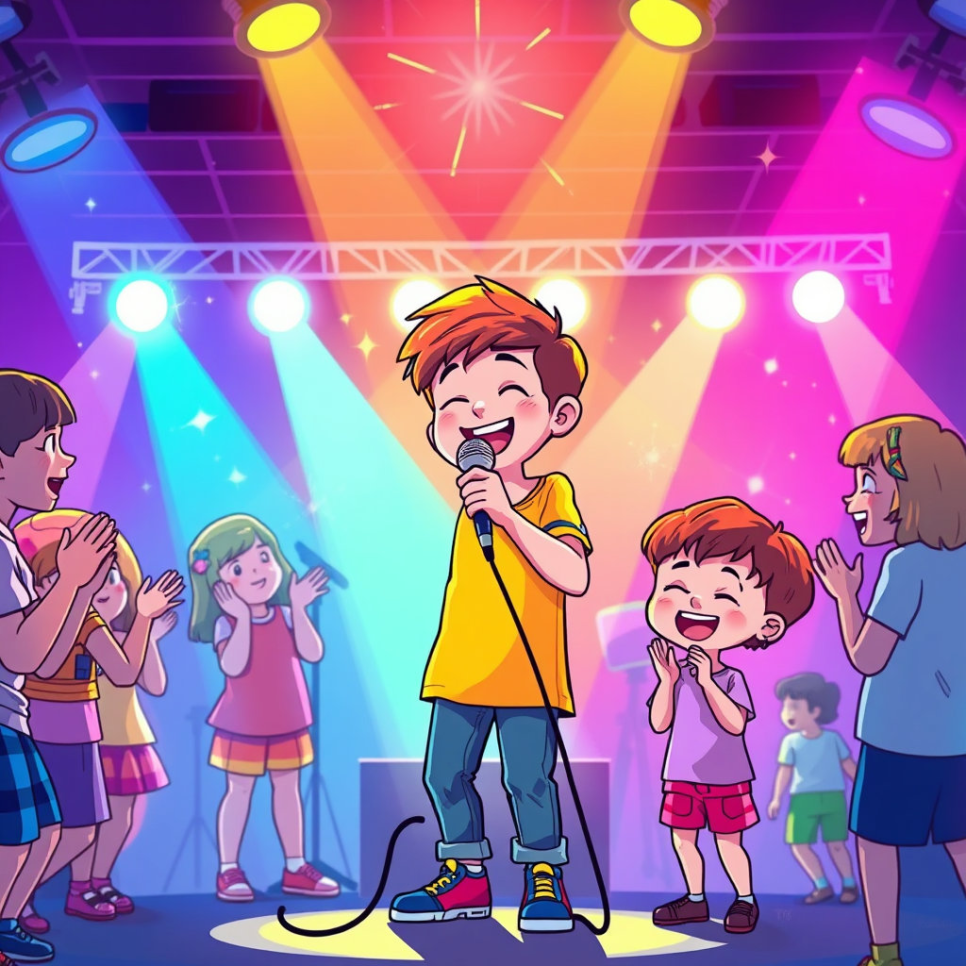안으로 들어오자마자 친구들은 신기한 기계와 반짝이는 화면에 “와~!” 하고 놀랐어요. 민재는 “누가 먼저 부를래?” 하고 물었어요. 친구들은 잠깐 고민하다가, 제비뽑기를 하기로 했죠. 작은 상자에 손을 넣어 뽑기! 제일 먼저 뽑힌 사람은 수아였어요! “어머! 나야? 떨리지만 부를래!” 수아는 귀여운 토끼 노래를 부르기 시작했어요. 친구들은 박수를 치며 따라 불렀어요. 무대에 선 수아는 조금 떨었지만 곧 웃으며 춤도 추었답니다.