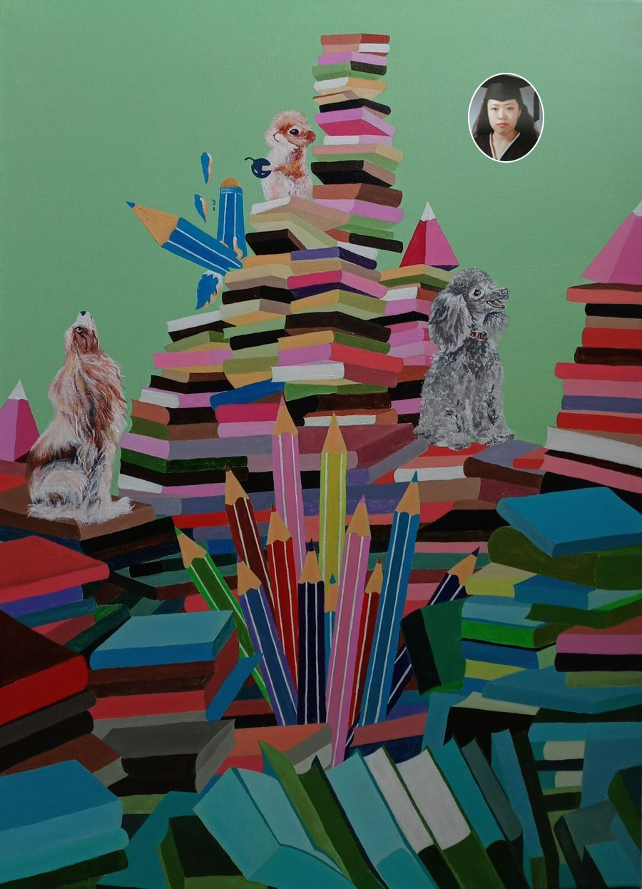 하지만 나는 상 자체보다, 이 과정 속에서 내가 무엇을 쌓아왔는지를 더 중요하게 여긴다. 매번 출품할 때마다 나는 조금씩 다른 층위의 책을 올렸고, 색을 달리했으며, 강아지의 시선을 조정했다. 그 반복 속에서 나는 비로소 '쌓는다는 것'의 의미를 이해하기 시작했다. 그것은 완성이 아니라 지속이며, 도착이 아니라 과정 그 자체였다.