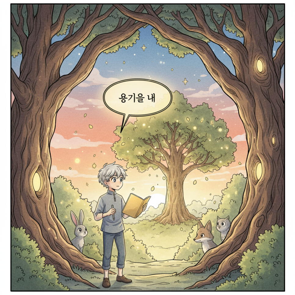 나무의 가르침을 통해 한스는 진정한 용기가 무엇인지 배웁니다. 용기는 두려움이 없는 것이 아니라, 두려워하면서도 앞으로 나아가는 것이라는 진리를. 마침내 한스는 용기를 내어 토마스에게 진심 어린 사과를 전하고, 두 친구는 다시 만날 수 있게 됩니다.