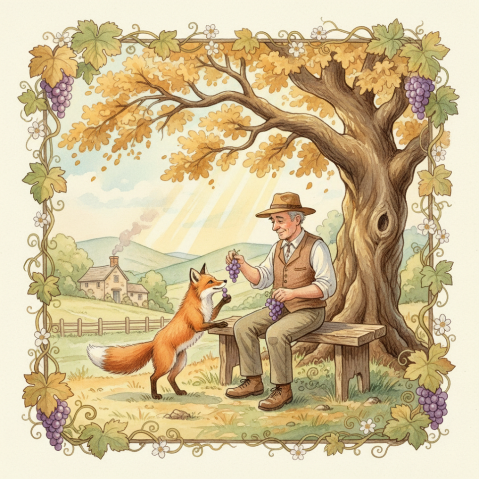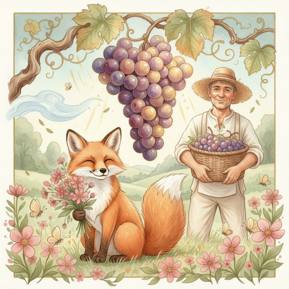 원작에서 여우는 영리한 꾀로 농부를 속이고 포도를 훔쳐 달아납니다. 하지만 저는 늘 의문이었습니다. '정말 그게 전부일까? 여우는 행복했을까?'