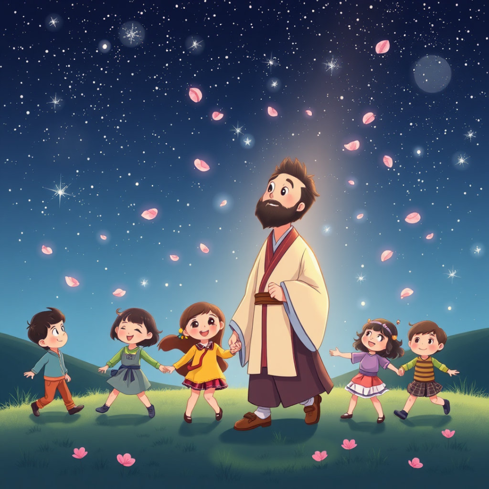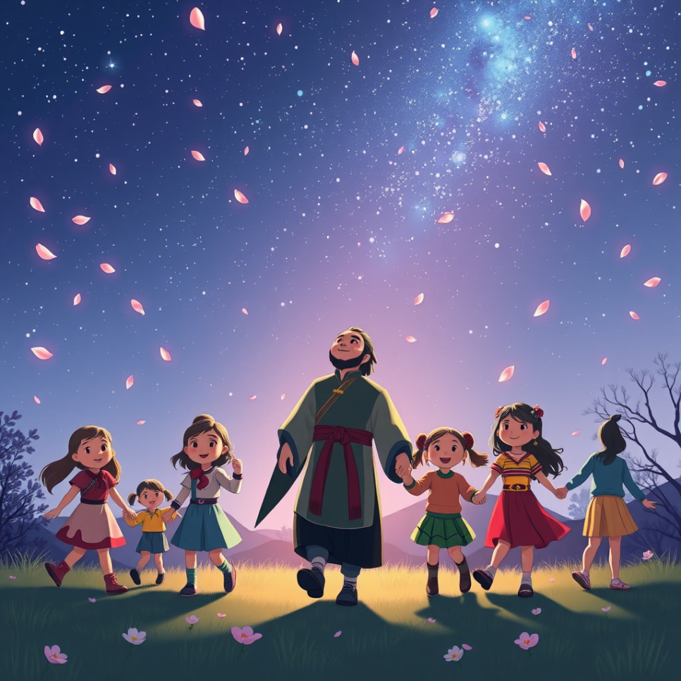 유비는 오랜 옛날 사람이지만, 그의 따뜻한 마음은 지금도 우리 곁에 살아 있어요. 친구를 생각하고, 다른 사람을 도우며, 바른 길을 선택하려는 너의 마음 속에도 유비가 있어요. 유비 할아버지는 오늘도 조용히 말해요. "항상 사람의 마음을 먼저 생각하렴. 그러면 너도 훌륭한 왕이 될 수 있단다."