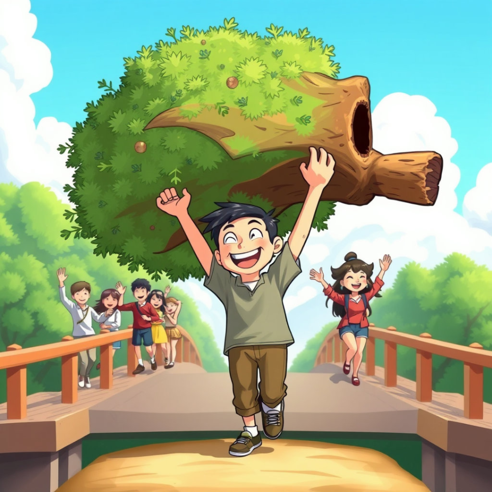 마을에 비가 많이 와서 다리가 무너졌다. 마을 사람들은 큰 걱정을 했지만 민수는 침착하게 다리를 고치기 시작했다. 나무를 다듬고, 기둥을 세우고, 다리를 튼튼하게 만들었다. 마침내 다리는 다시 무너지지 않을 만큼 강해졌다.