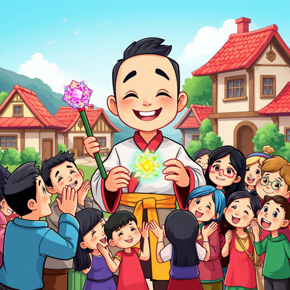 민수는 마을에서 가장 어려운 일을 해결할 수 있는 방법을 찾고 있었다. 결국, 그는 마법의 도구를 사용해 큰 문제를 해결하기로 했다. 사람들은 그의 능력을 보고 모두 기뻐했다.