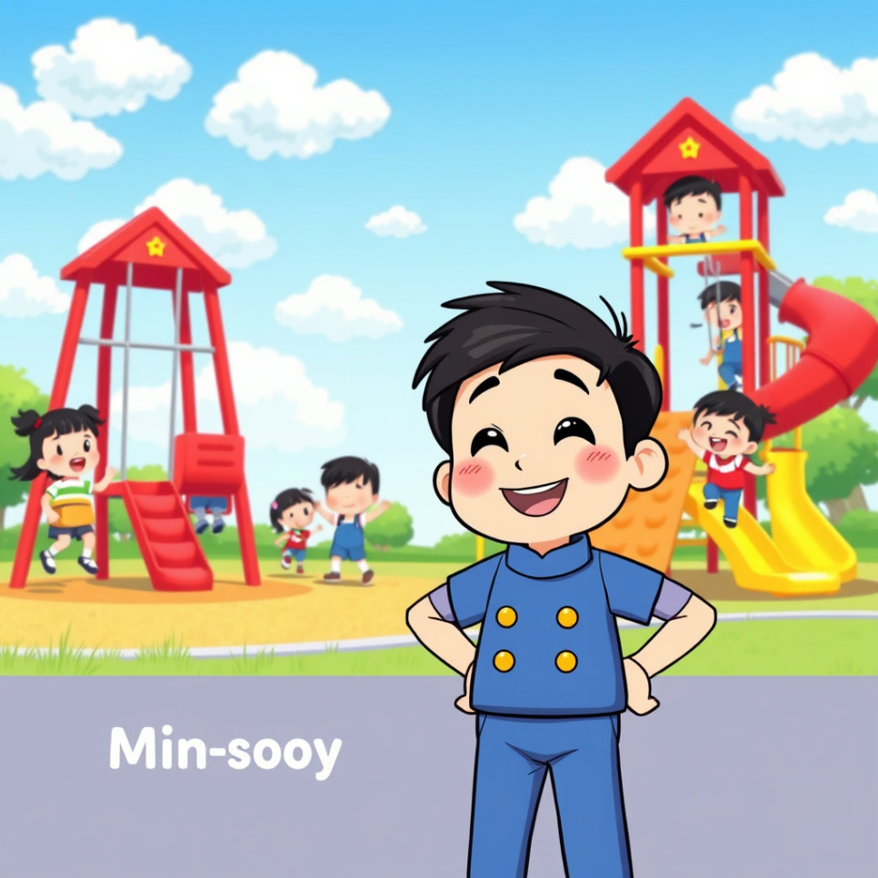 민수는 마을 아이들에게 놀이터를 만들어주기로 결심했다. 나무로 그네와 미끄럼틀을 만들고, 여러 가지 놀이 기구를 놓았다. 아이들은 즐겁게 뛰어놀며 민수에게 고마워했다.