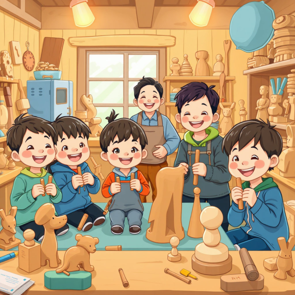 아이들은 민수의 손끝에서 나온 마법처럼, 자신만의 작은 나무 작품을 완성해 갔습니다. 그들은 이제 단순히 나무를 다루는 것이 아니라, 꿈과 희망을 만드는 법을 배우고 있었죠. 민수는 그 모습을 보며 생각했습니다. "물건을 만드는 것은 끝이 아니라, 사람들과 나누는 기쁨이 중요한 거야."