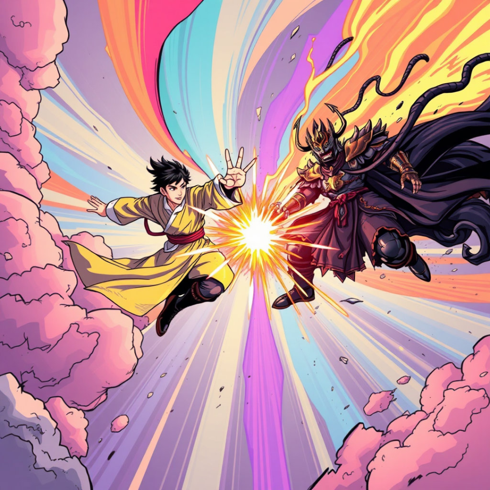 전우치는 요괴들을 물리치기 위해 도술 대결을 벌입니다. 번개와 바람, 불꽃이 오가는 숨막히는 싸움!