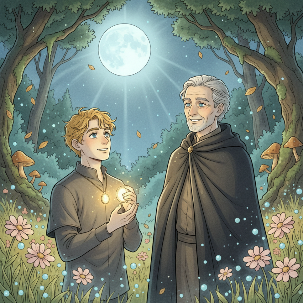 그날 저녁, 두 사람은 익숙한 공터에 앉아 별을 바라보았습니다. 바로 그 자리, 처음 만났던 그 공터였습니다. 5년 전, 무서움에 떨던 소년이 서 있던 자리. 이제 그 자리에는 자신감 있고 지혜로운 청년이 서 있었습니다.